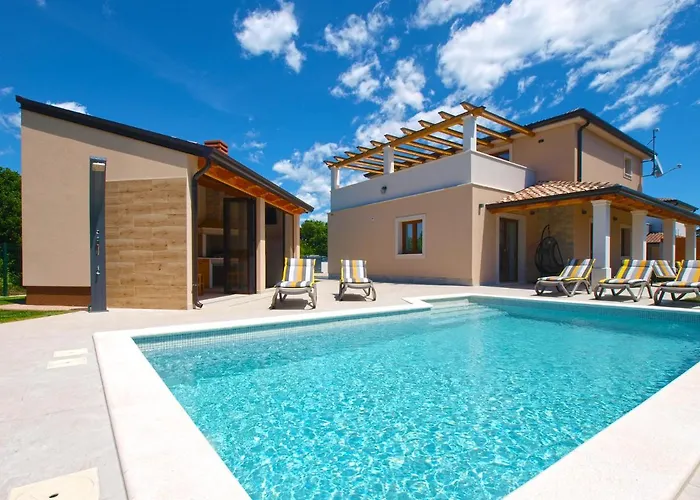 A Pula repülőtér 25 km-re található az ingatlantól. Ez a villa hozzáférést kínál a magán úszómedencéhez.